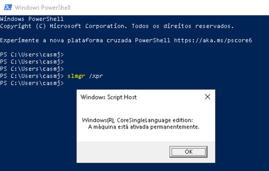 Para identificar o estado do licenciamento do produto Microsoft Windows, siga os seguintes passos: